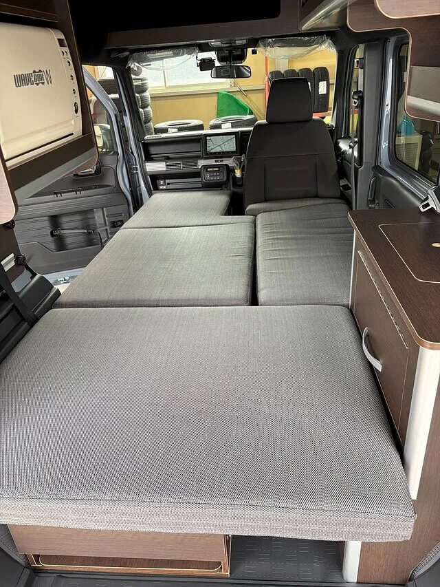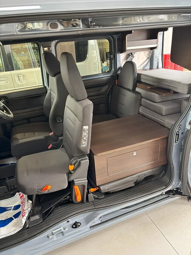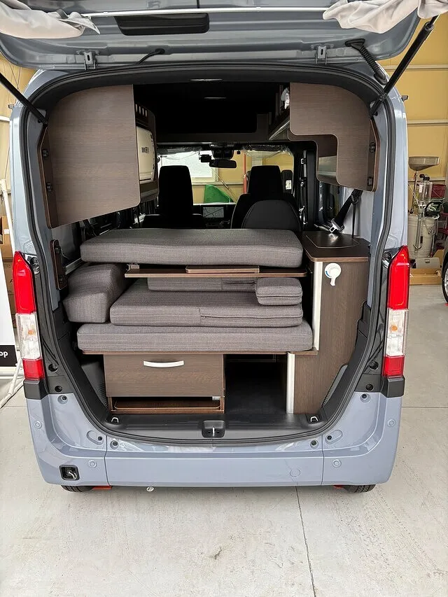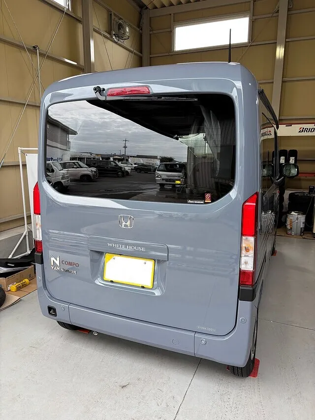 こちらはキャンピングカーの企画開発などで有名な『株式会社ホワイトハウス』様で発注させていただいたN-VANになります!