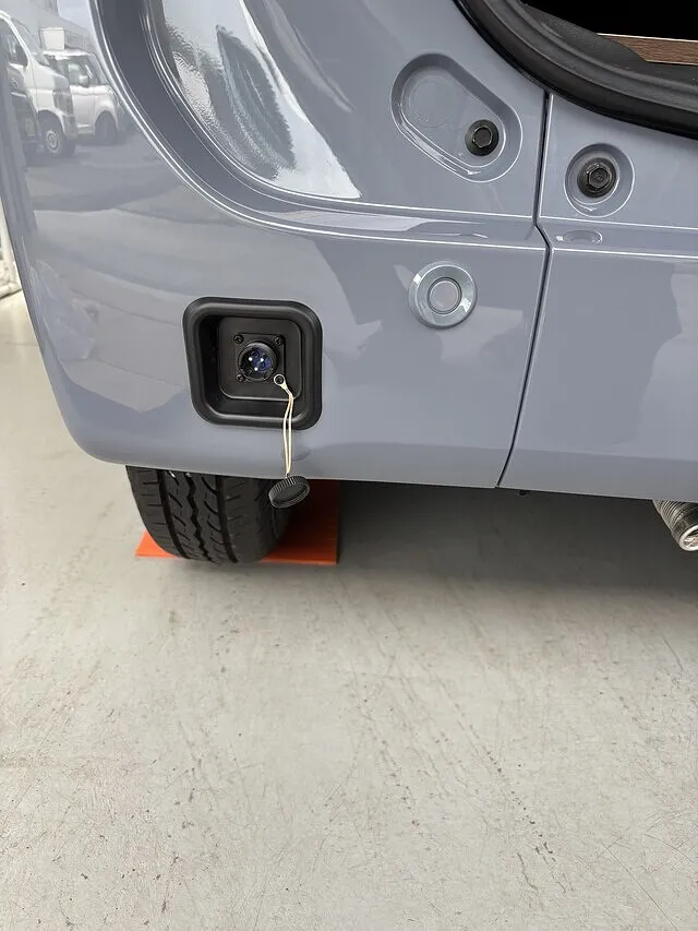 写真にもあるように、リア部分には外部電源コードがあり、オートキャンプ場や自宅の駐車場など、簡単に車に電源を引き込めます。